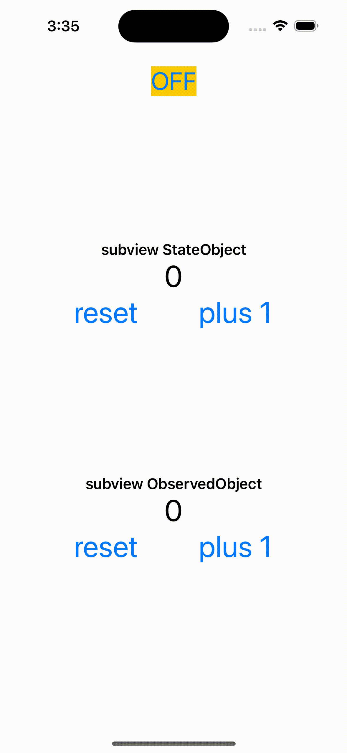 ์ฌ๊ธฐ์ StateCounterView๋ StateObject ๋ฅผ ๊ฐ์ง๊ณ ์๊ณ , ObservedCounterView ๋ ObservedObject๋ฅผ ๊ฐ์ง๊ณ ์๋ค.