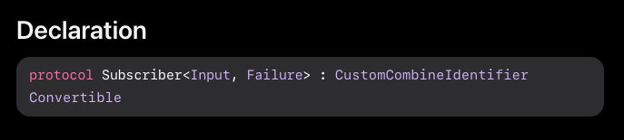 public protocol Subscriber<Input, Failure> : CustomCombineIdentifierConvertible {